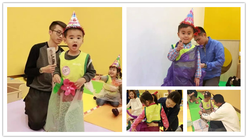环境保护从可循环利用做起,宝贝挑选自己喜欢的“衣服”让爸爸妈妈进行服装设计。